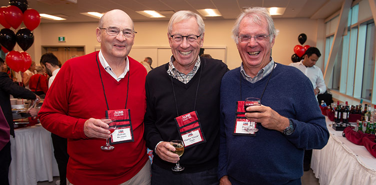 Photo caption: Chuck Fraser (centre, BBA'68) joined his 50th reunion classmates Duncan MacDonald (BBA'68) and David Christie (BA'68, LLB'73) at Homecoming 2018.