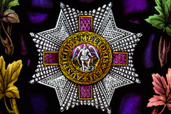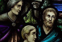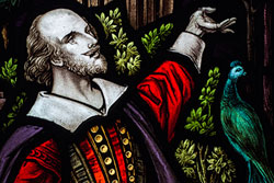Thomas, Earl of AshburnhamEarl Ashburnham settled in Fredericton in 1900. Too aged to fight in the First World War, the war veteran served his community by organizing and participating in war efforts at home. Commemorating his love for theatre, the window features William Shakespeare at the court of Queen Elizabeth I.