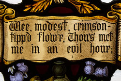 John Fletcher TaylorA gift from his brother F.R. Taylor, the window features scenes from the poems of Robert Burns, To A Mountain Daisy and The Cotter’s Saturday Night.