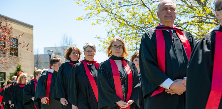 Established in 2002, the alumni honour guard is a cherished UNB Saint John tradition that sees UNBSJ alumni participate in convocation celebrations by leading the graduating class into their convocation ceremony.
