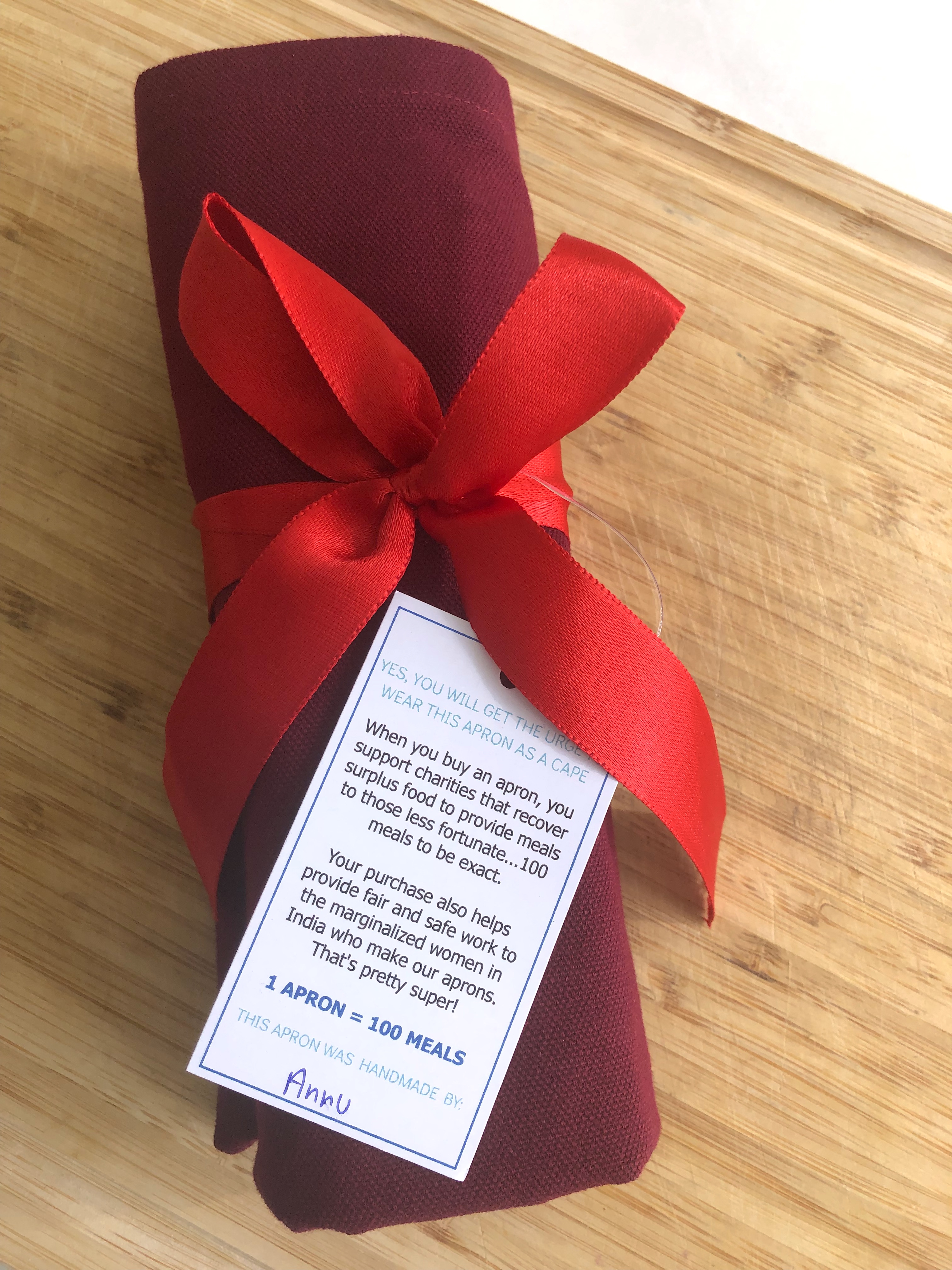 For every apron sold, the company donates the equivalent of 100 meals through national and international charity partners.