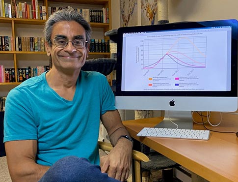 Dr. Sanjeev Seahra and Dr. James Watmough are professors of mathematics and statistics at UNB and two of the many researchers involved in modelling the pandemic’s impact on Canada. They shared some of their knowledge and insight on the complex science behind simple lines.