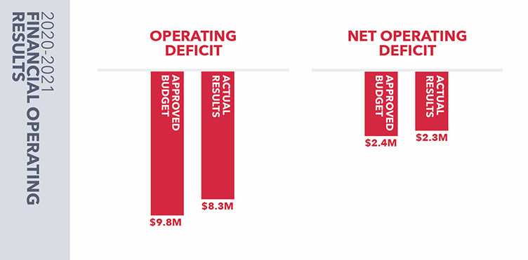 The actual results were better than budgeted. Enrolments declined less than expected. This along with a few other variances resulted in a net deficit of $2.3 million.