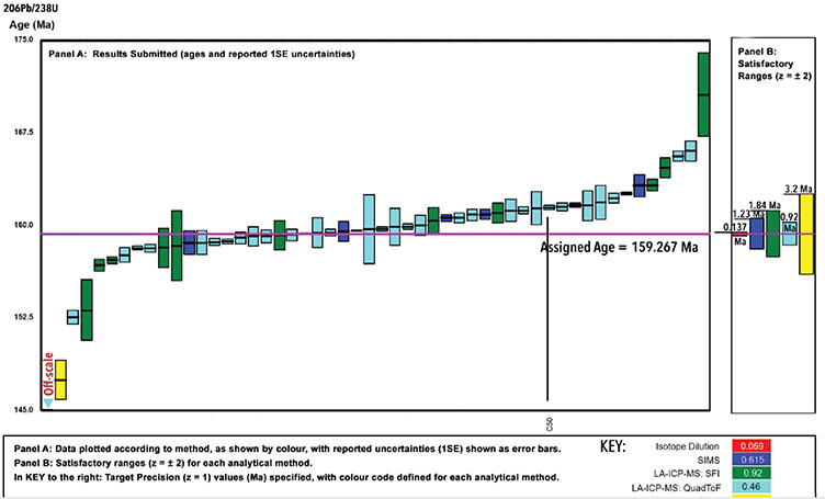 This round of G-chron proficiency testing has taught us that the most accurate U-Pb dates for young zircon grains should be based on the most concordant data (<0.5% discordant). The PENG-16 standard will now be used to date young geological systems.