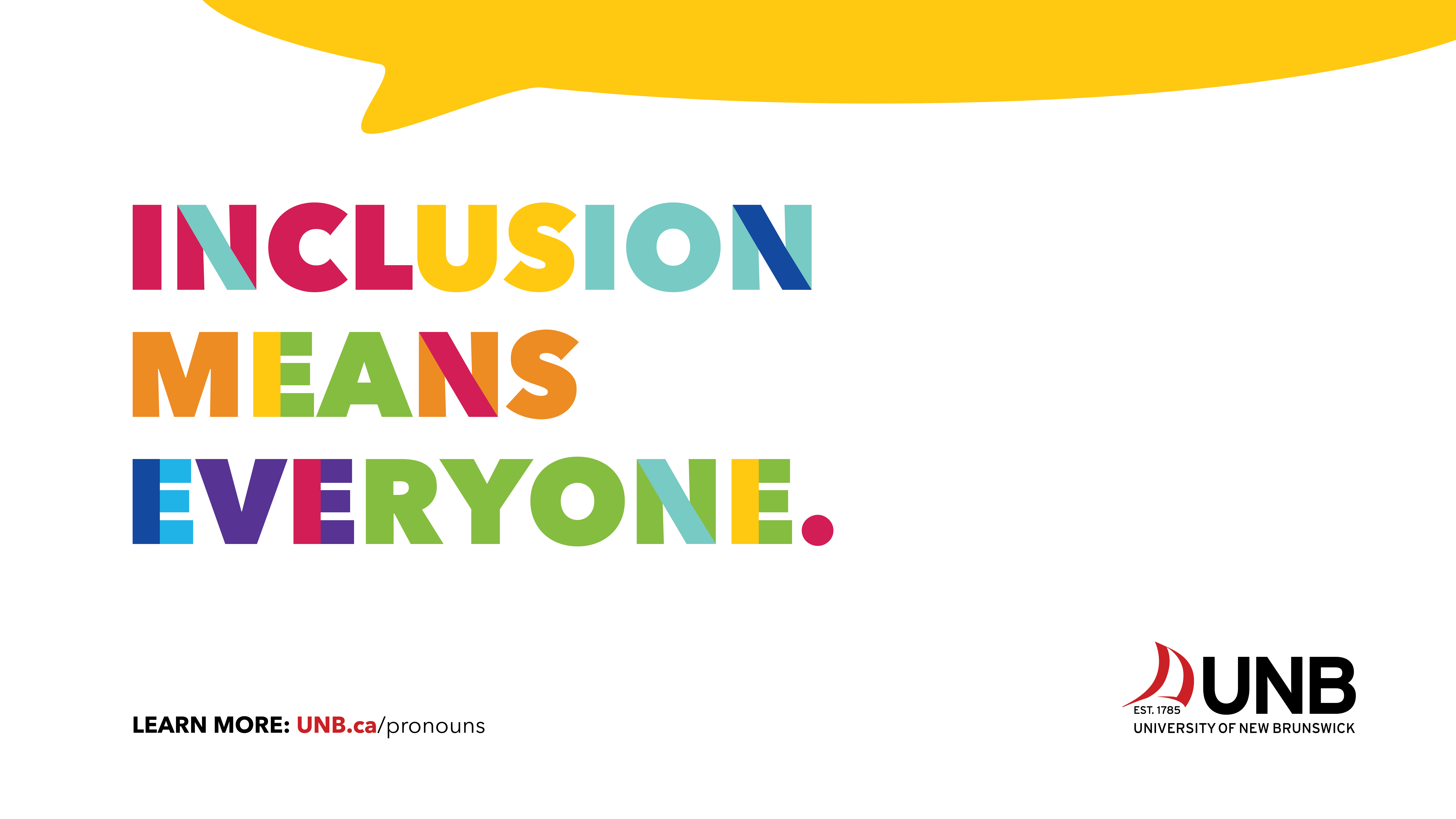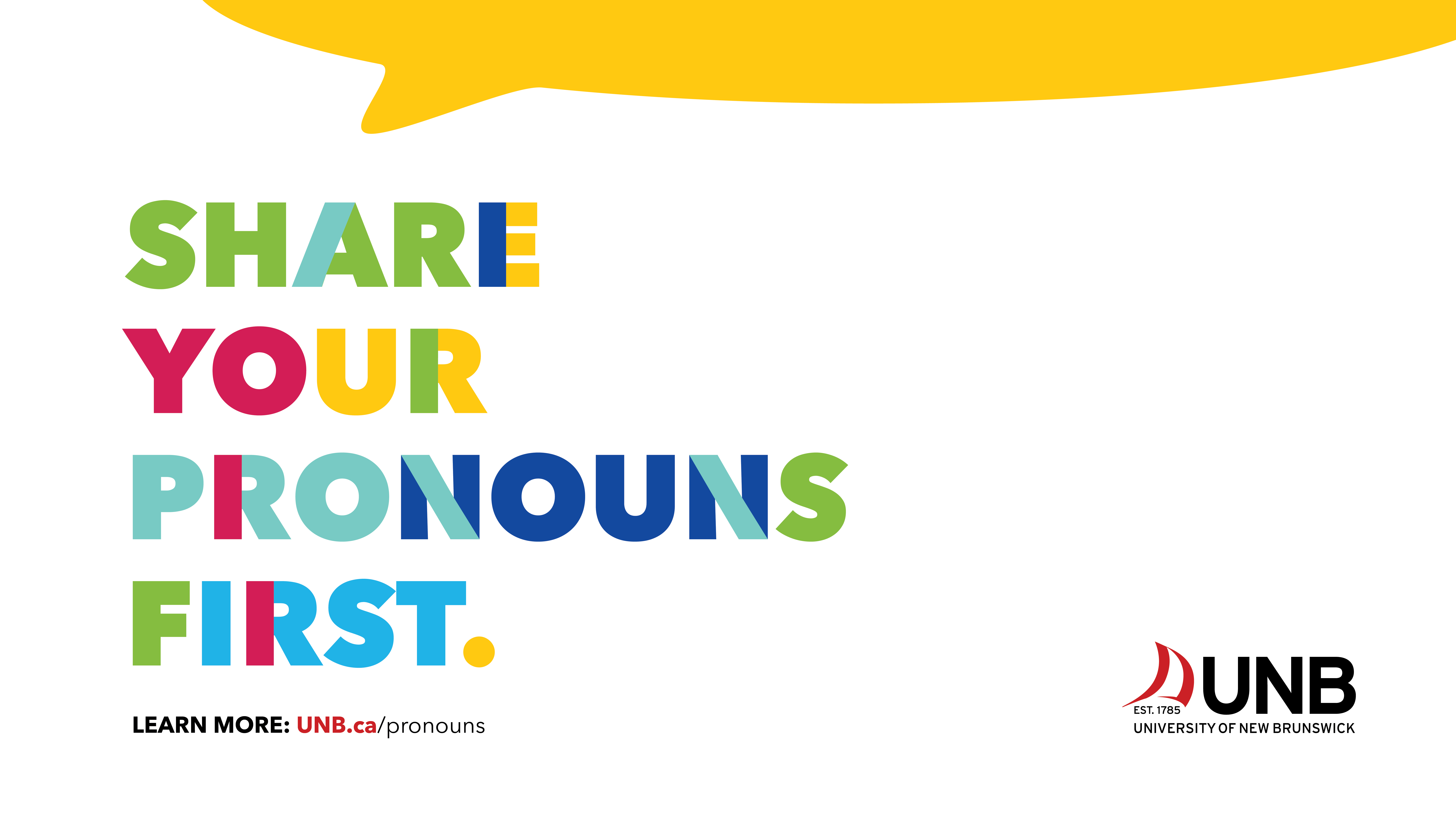 UNB is committed to fostering an inclusive environment and campus culture that supports everyone in being their most authentic selves. Learning about pronouns can help us: