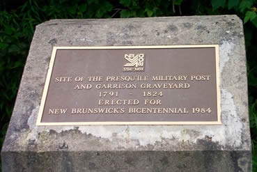 To secure the vital St John River from the growing threat and claims from the United States, the Lieutenant Governor of New Brunswick, Thomas Carleton, directed that two British military posts be established in the valley. The largest one was built at the mouth of Presqu' Ile River in 1790. It occupied five acres, with a blockhouse, barracks for 96 soldiers, officers quarters for 12, a guardhouse, stables and stores. Fort Presqu'Ile was abandoned in 1823. During the Maine/New Brunswick Border Dispute the post was repaired and used as an observation post, depot and rallying point for the local militia. The only evidence remaining is the cemetery. There is a provincial historic marker on the side of the road at the foot of the height of land upon which stood the military post.