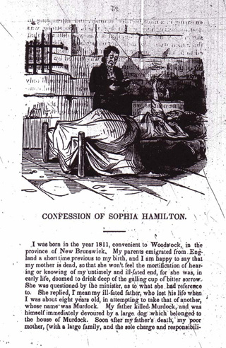 William Jackson, Life and Confession of Sophia Hamilton, Who Was Tried, Convicted and Sentenced to be Hung at Frederickton, on the 8th Day of April, 1845 [Frederickton, N.B., 1845], CIHM no. 89205.